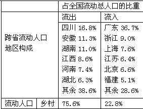 材料一:“2010年我国跨省流动人口地区构成情况和流动人口城乡结构”表