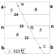 1、单选题 气温的日变化一般表现为最高值出现在14时左右,最低值出现在日出前后。下图示意某区域某日某时刻的等温线分布,该日丙地的正午太阳高度达一年中最大值。a、n、b是纬度且a、n,n、b都相差1°读图回答下列各题。