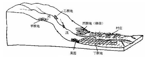 1.根据图示四块耕地所处的河流位置和地形条件的差异判断,乙耕地位于河流上游,坡度最大,故最应退耕还林。