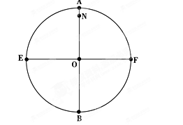 5、单选题 读下图,外圆为晨昏线圈,中心点O为太阳直射点,N为北极点,A点的地理坐标为(66°34′N,0°),据此回答下列问题。