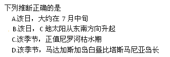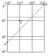 3、单选题 读经纬网图,图中A点位于南纬68度,AB为晨昏线的一段;此刻,北京处于白昼;近期,C地日出时刻越来越早。据题设条件回答11题。
