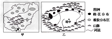 1.甲区域大面积种植橡胶的最有利区位条件是