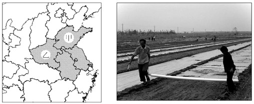 2、综合题 大蒜在我国是一种秋播夏收作物,喜湿、喜肥、不耐旱,忌渍水。根据联合国粮农组织统计,中国大蒜出口约占世界大蒜贸易量的90%,在国际市场上具有较强的竞争力。下图(左图)中的阴影区域为我国大蒜主产省区,读图完成下列问题。