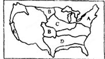 1、综合题 读“美国农业带分布图”,回答下列问题:(共6分)