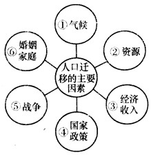 1、单选题 人口迁移受许多因素影响,有些来自迁出地,有些来自迁入地,还有些是中间障碍因素。下图为影响人口迁移的主要因素示意图,下列说法正确的是