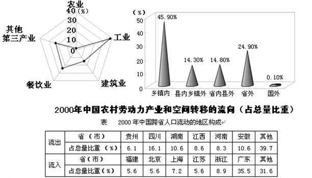 (1)简述2000年中国农村劳动力转移的特征,并分析其原因?。