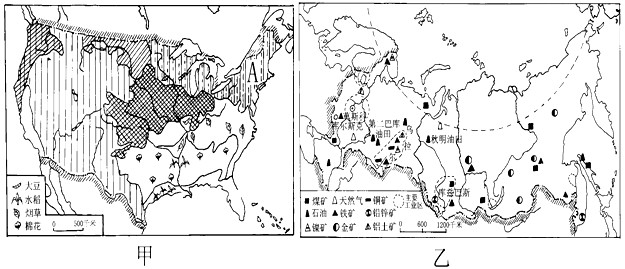 3、综合题 甲、乙两图分别为两个国家的地理简图,读图回答问题。