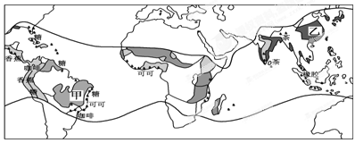1.图中热带经济作物分布的主要影响因素为热量。