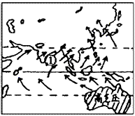 1、单选题 下图是东亚和南亚地区某时期季风示意图,读图完成1—2题。