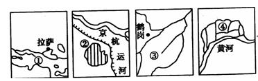 3、单选题 读下列我国四个区域简图,回答下列各题。