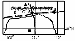4、单选题  某校老师利用暑假时间带领学生进行社会考察活动,他们分别考察A、B、C、D四地。根据图中信息(图中黑粗线为铁路线),回答下列各题。