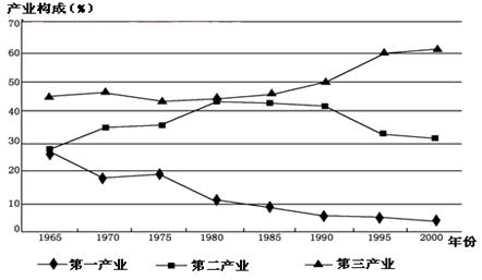 4、单选题 下图为我国某省三类产业结构变化示意图,完成下列各题。