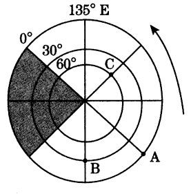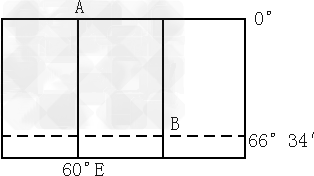 3、单选题 下图中相邻两条经线的经度差为30度,A、B为晨昏线上的两点,太阳直射在东半球。据此完成1~3题。