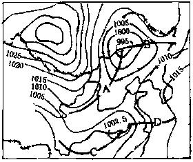 2、综合题 下图是我国部分地区春季某时的气压分布图,读图分析后,完成下列要求: