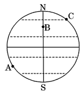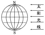 (3)将该图利用下图转换为昼夜各半的侧视图,标注经度。