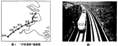 3、多选题 ? 2010年10月26日上午9时,随着两列国产“和谐号”CRH38OA新一代高速动车组从上海虹桥站、杭州站同时疾驶而出,沪杭高速铁路通车运营。这是我国高速铁路引领世界高速铁路发展潮流的又一重要标志。目前,我国高速铁路运营里程已达7431km,成为世界上高速铁路系统技术最全、集成能力最强、运营里程最长、运行速度最高、在建规模最大的国家。读图1和图2,回答1—2题。