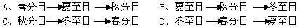 5、单选题 南回归线至南极圈之间正午太阳高度的变化,按从小到大的正确排序是