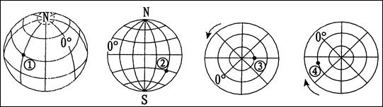 【小题3】①是(30°N ,60°W);② 坐标(30°S ,150°E),比较方向,要把两地放在经度180°以内的范围比较,①在②的东北方。选D正确。