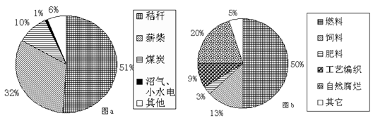 1、单选题  读“江南丘陵某县农村生活用能构成图(图a)”及“该县农村秸秆利用方式比例图(图b)”,完成题。