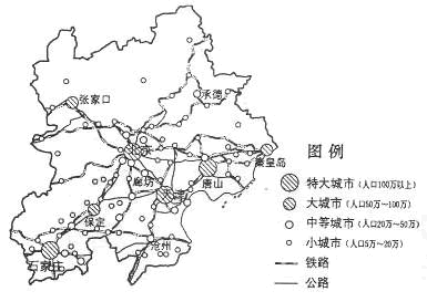 1、综合题 读图并结合所学知识,简述图示地区东南部城市密集的原因。