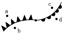 ①a?②b?③c?④d2.图中四点位于雨区的是