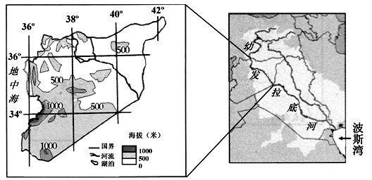 5、综合题 (28分)叙利亚位于幼发拉底河上游地区,地理位置重要。根据下列材料,结合所学知识,完成(1)~(4)题。