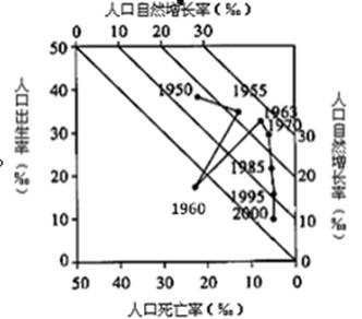 2、单选题 下图为我国1950~2000年人口增长动态统计图。分析判断下列各题。