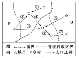 1、单选题 读模拟人口迁移示意图,完成下列问题。