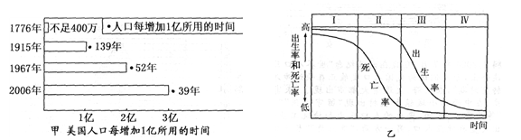 小题2:美国的人口增长处在图乙中的第?阶段,遇到的问题是?
