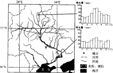 【小题1】根据右图可判断:甲沙洲面积在7、8月时最小,4月次之,说明该河有夏汛和春汛,判断为东北地区的河流;