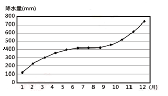 4、单选题 下图是北半球亚热带某地降水量逐月累计曲线图。读图回答下列问题。