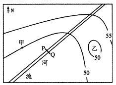 3、单选题 下图为我国东部地区某河流两侧潜水位等值线示意图,图中数值表示潜水位(单位:米),读图完成下列各题。
