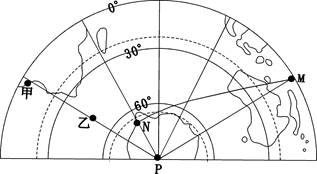 5、单选题 图是以极点为中心的东半球图。此刻,曲线MN上各点太阳高度为0°,MN与EP相交于N点,该季节,北美大陆等温线向南凸出。读图回答问题