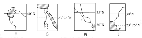4、单选题 在年降水量不足250毫米、灌溉水源不足的地区,一般不能发展灌溉农业,下图中的甲、乙、丙、丁所示地区都是灌溉农业区。读图回答下题。
