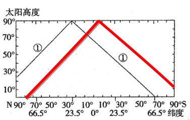 小题3:图中,①线表示夏至日全球不同纬度正午太阳高度分布状况,请在图中画出10月17日全球不同纬度正午太阳高度分布的大致状况。
