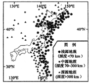 (1)请指出日本及其附近海域震源深度分布特点(3分)