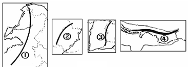 5、单选题 下图中有四条山脉,分析判断回答下列各题