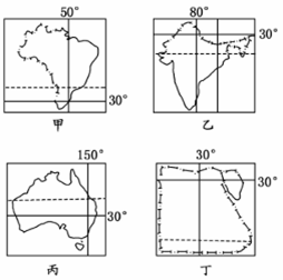 小题1:由经纬度和国土轮廓可知甲为巴西,乙为印度,丙为澳大利亚,丁为埃及。四图图幅相同,但埃及国土面积最小,因此比例尺最大;