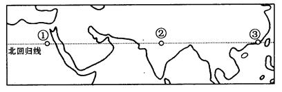 图中①、②、③三地的纬度相同,但气候类型不同,根本原因是