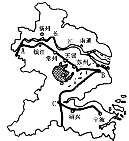 (1)长江三角洲城市化水平较高,形成了重要的城市群。长江三角洲地跨_________、_________、____________三省市,请填出图中A、C城市的名称: