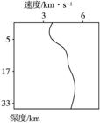 本题解析:由波速的变化幅度知该地莫霍界面大约位于地面以下5千米处。海洋地壳薄,经度180°,纬度0°在太平洋。由波速较小知其是横波。