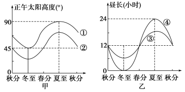 小题1:图甲和图乙中分别反映纬度较低的两条曲线是( )