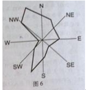 5、单选题 该图是某城市的风向玫瑰图,现该城市计划在城郊兴建一座火电厂,从风向考虑,应布局在