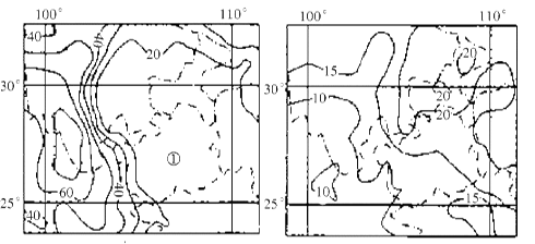 1、单选题 下图为我国西南地区1月(左图)和7月(右图)晴天出现频率(%)图,读图回答下列问题。