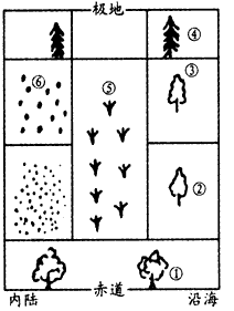 5、综合题 读自然景观地域分异示意图,回答下列问题。