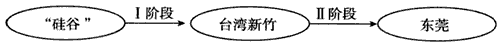 4、单选题 世界著名十大电脑公司之一的某公司总裁指出,若东莞通往深圳口岸的公路瘫痪,全球70%的电脑将加价。目前,东莞本地人口约150万,外来人口约200万,其中港、澳、台同胞70万。东莞约有3000多家电脑外围设备生产企业,已有“北中关南东莞”之说。读世界电脑产业空间发展示意图,完成1—2题。