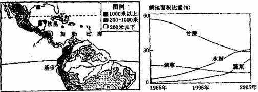 材料三:左图为中美洲地形图,右图为古巴种植业结构变化示意图