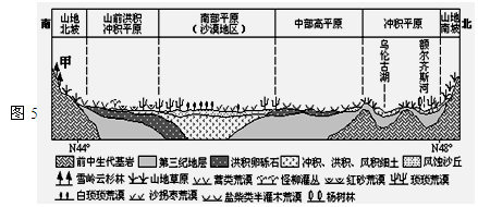4、单选题 图5为我国某盆地自然景观剖面图,读图回答10-12题。