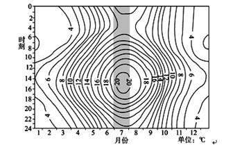 2、单选题 该图为某地全年平均气温(30年平均)的等温线图,读图回答问题。