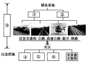 2、综合题 读“灾中应急”行动图,回答下列问题。